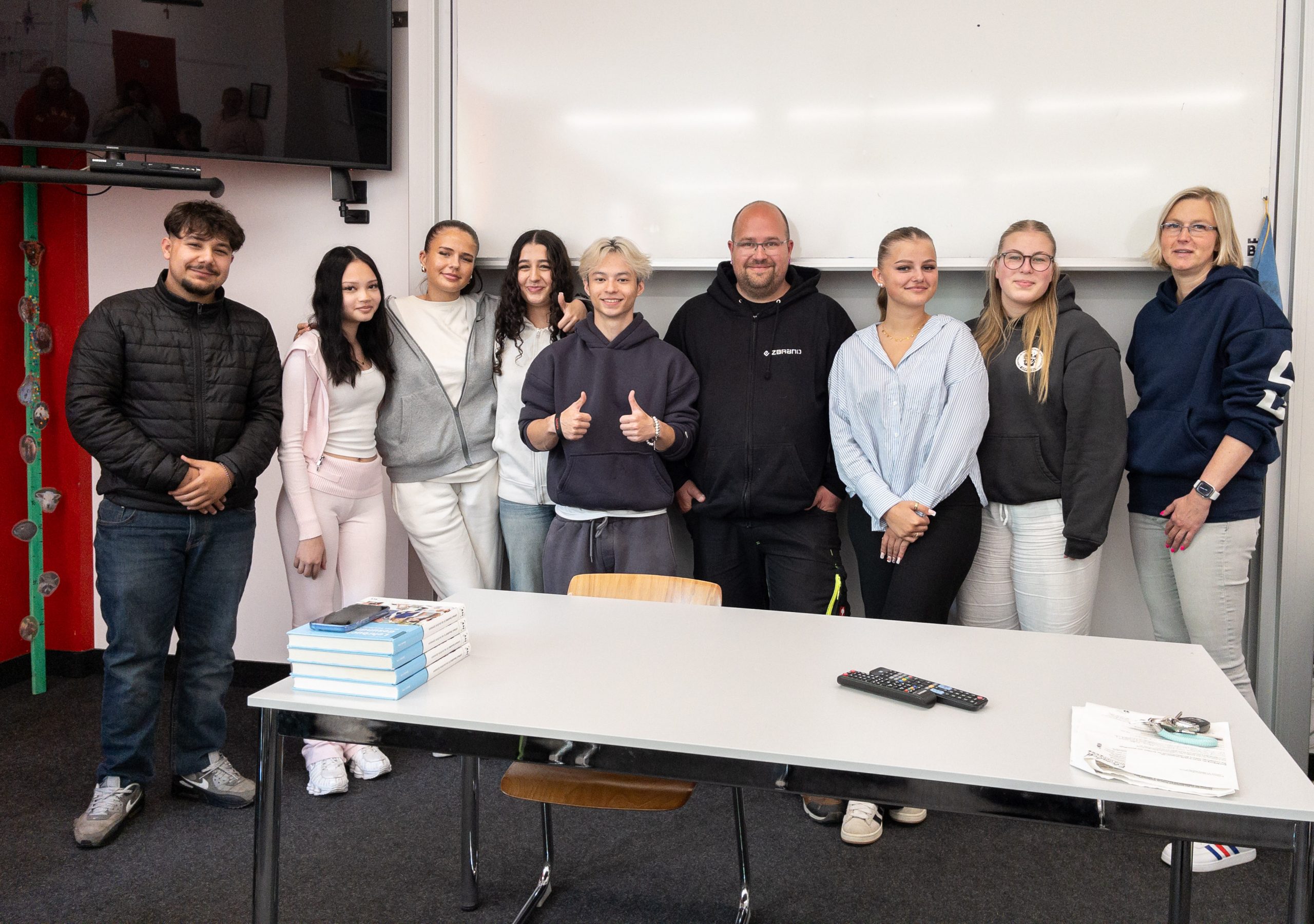 Fit fürs Praktikum: Schüler*innen der Höheren Berufsfachschule mit Christian Rempel von der Evangelischen Jugend Bünde Ost und Lehrerin Nicola Spilker