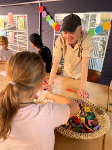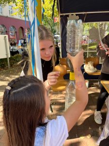 Beim diesjährigen Weltkindertag in Herford war auch das Elisabeth-von-der-Pfalz-Berufskolleg wieder mit einem kreativen Angebot vertreten. Die Mittelstufe der Erzieher*innenausbildung hatte das Thema „Unter Strom“ gewählt und dafür drei abwechslungsreiche Stationen vorbereitet: