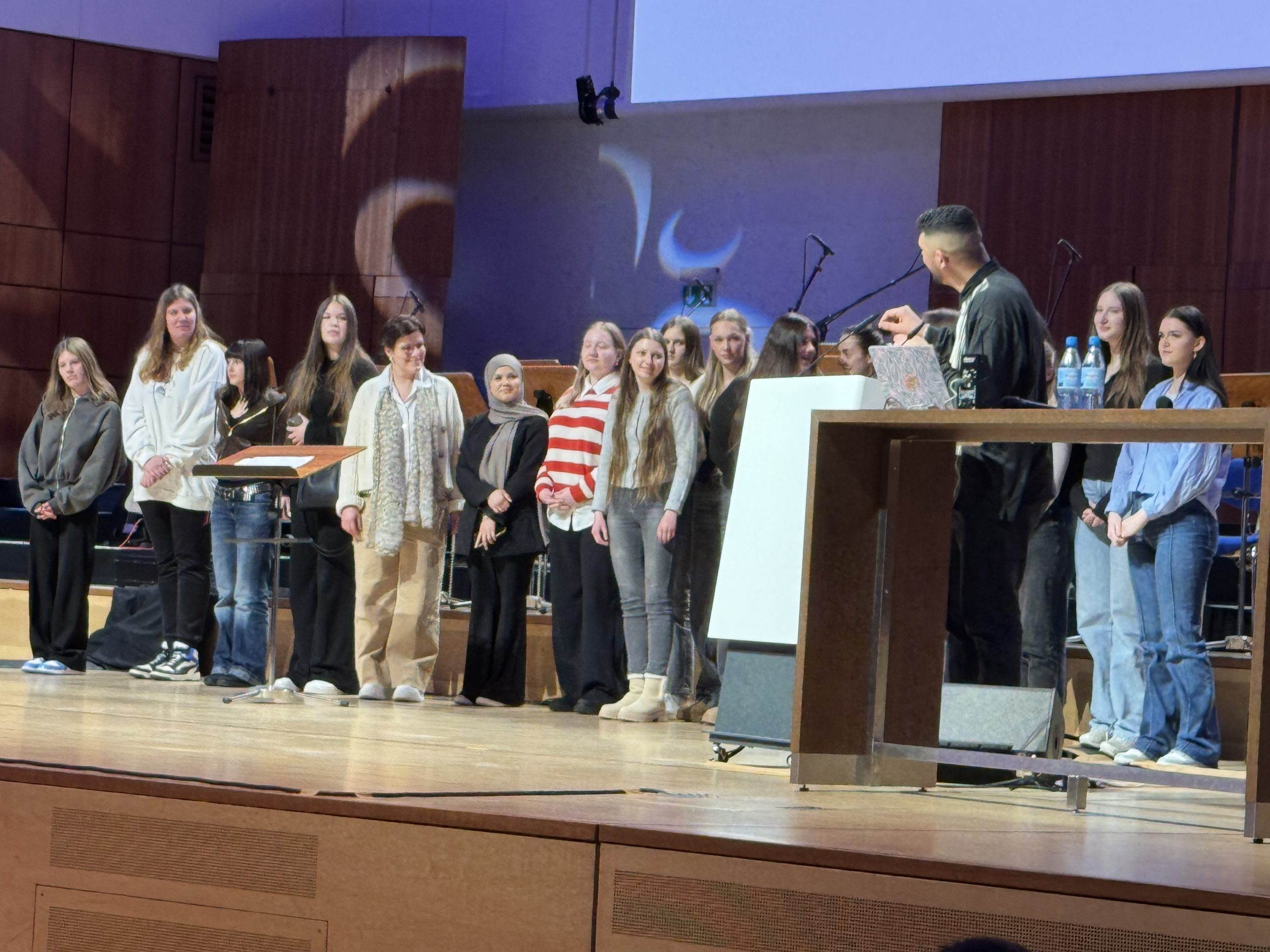Preisverleihung an die Oberstufe Kinderpflege am Elisabeth-von-der-Pfalz-Berufskolleg durch Comedian und Jury-Mitglied Abdul Khader Chahin in der Duisburger Mercatorhalle